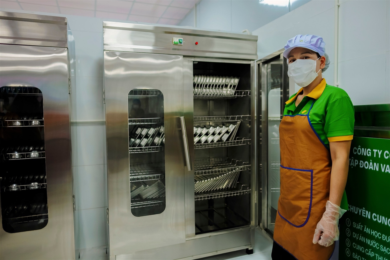Bếp ăn tổng suất ăn học đường tại Thái Nguyên được trang bị các thiết bị hiện đại và tuân thủ các tiêu chuẩn vệ sinh an toàn thực phẩm nghiêm ngặt.